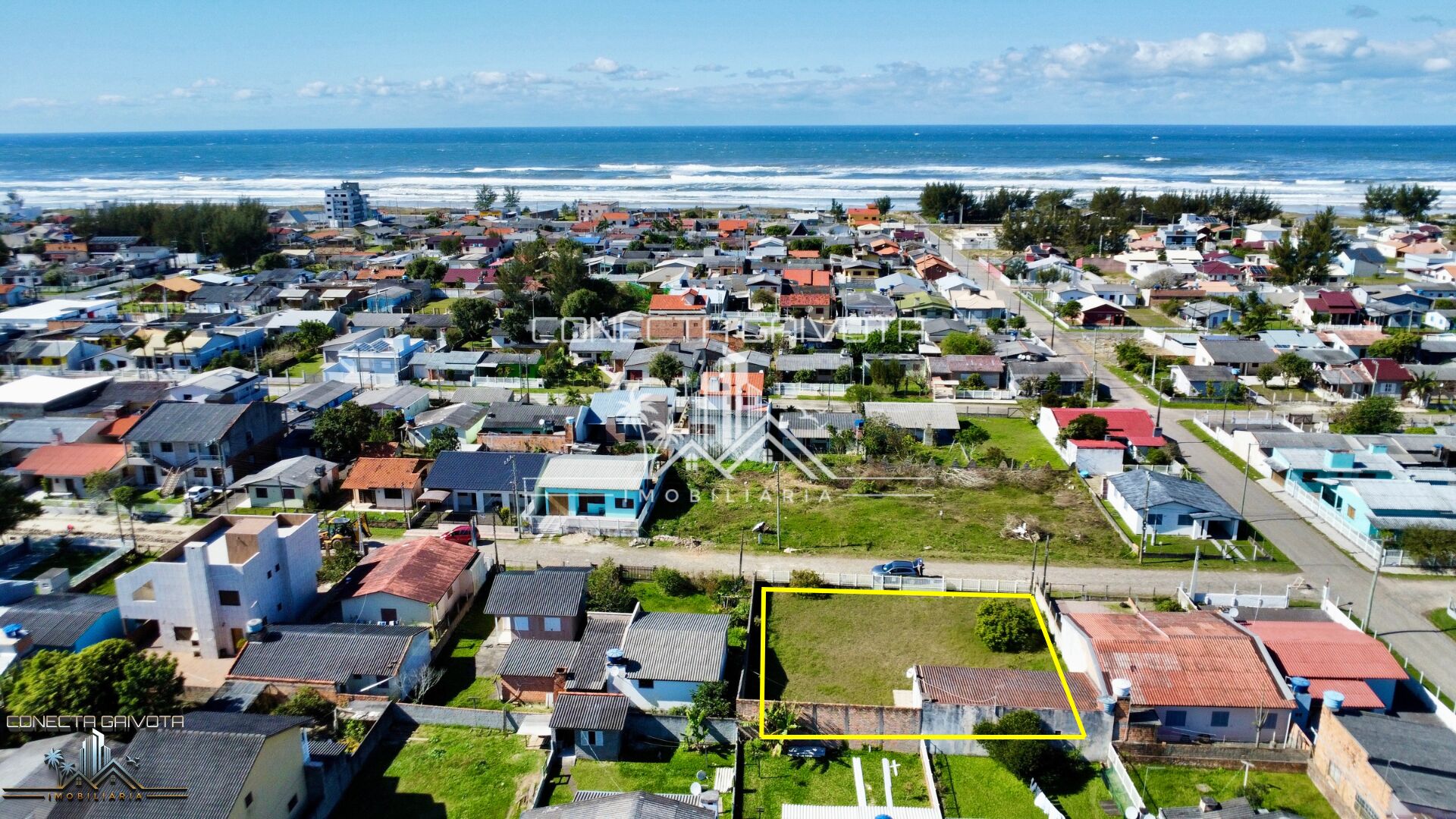 Aproximadamente 300 metros da beira mar , possui uma construção pequena no canto de um dos terrenos .